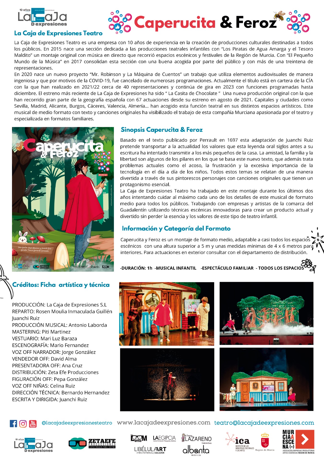 Caperucita y Feroz es la nueva apuesta de la Caja de Expresiones, un musical infantil que transporta esta famosa historia a la actualidad. La amistad, la familia y la libertad son la base de este nuevo texto original de Juanchi Ruiz que pretende no dejar a nadie indiferente.